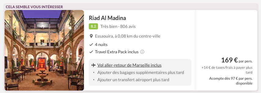 À noter : les prix sont corrects au moment de la publication, sur la base des exemples de dates fournis, et sont soumis à des fluctuations, en fonction des disponibilités.