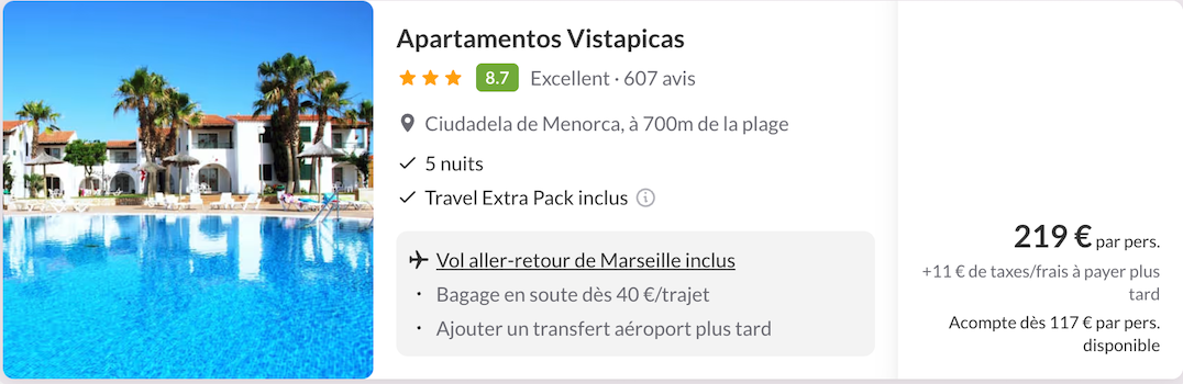 6 jours dans un appart’hôtel très bien noté avec piscine, proche des plages, vols A/R inclus 🌴