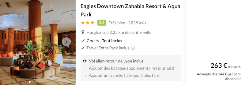 A noter : les prix sont corrects au moment de la publication, sur la base des exemples de dates fournis, et sont soumis à des fluctuations, en fonction des disponibilités.