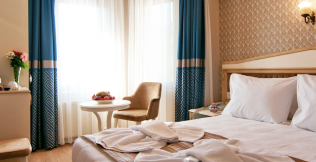 LâhĂŽtel offre des chambres modernes, un rooftop avec vue sur le Bosphore et un accueil typiquement turc. FlĂąnez dans les ruelles animĂ©es, explorez les bazars colorĂ©s et goĂ»tez aux dĂ©lices locaux entre deux visites mythiques.