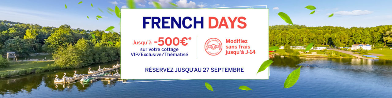 Et pourquoi ne pas prolonger vos vacances et continuer à vous détendre? Voici une offre intéressante pendant les "French Days" avec Center Parcs. En effet, elle propose jusqu'à 500€ de remise* !