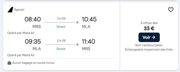 Exemple de vols du 12 au 15 décembre 2025 depuis Marseille :