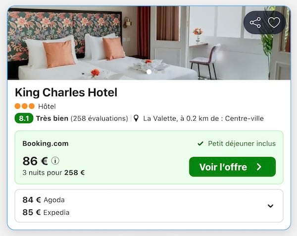 A noter : les prix sont corrects au moment de la publication, sur la base des exemples de dates fournis, et sont soumis à des fluctuations, en fonction des disponibilités.