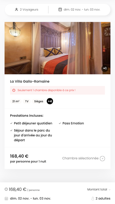 Exemple de séjour du 2 au 3 novembre 2025 :