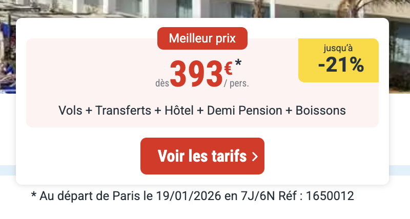 À noter : les prix sont corrects au moment de la publication, sur la base des exemples de dates fournis, et sont soumis à des fluctuations, en fonction des disponibilités.