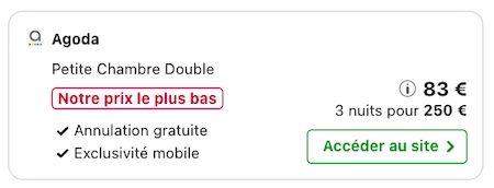 A noter : les prix sont corrects au moment de la publication, sur la base des exemples de dates fournis, et sont soumis à des fluctuations, en fonction des disponibilités.