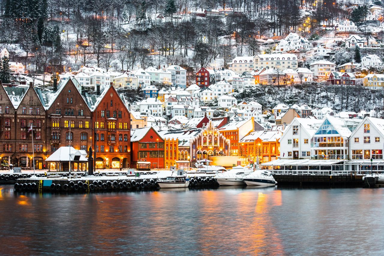 Bergen offre chaque année une ambiance féérique à ses visiteurs. Visitez la plus grande ville en pain d'épices du monde, déambulez sur la place des fêtes pour acheter vos cadeaux de Noël et dégustez les spécialités norvégiennes... Tout ça sur un fond de carte postale !