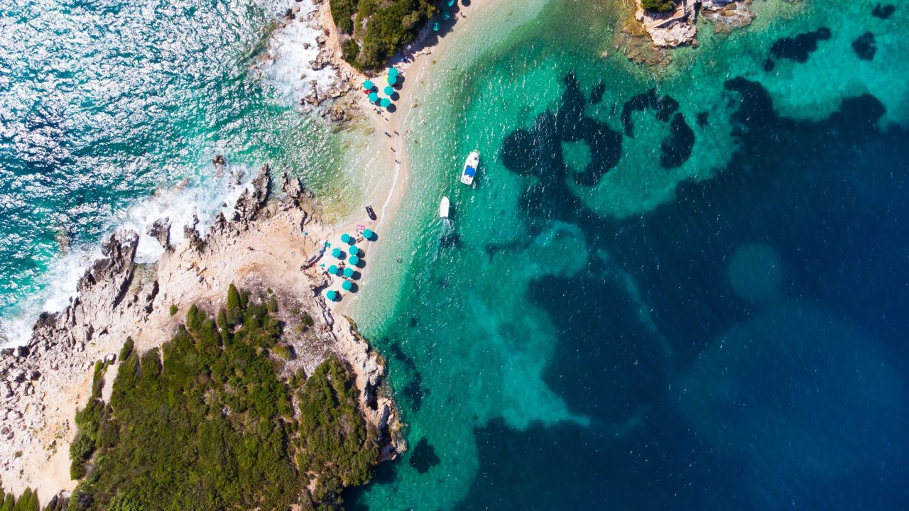 Ksamil, Ă l'extrĂȘme sud de l'Albanie et en face de l'Ăźle grecque de Corfou, est souvent comparĂ©e sur les rĂ©seaux sociaux aux Maldives.