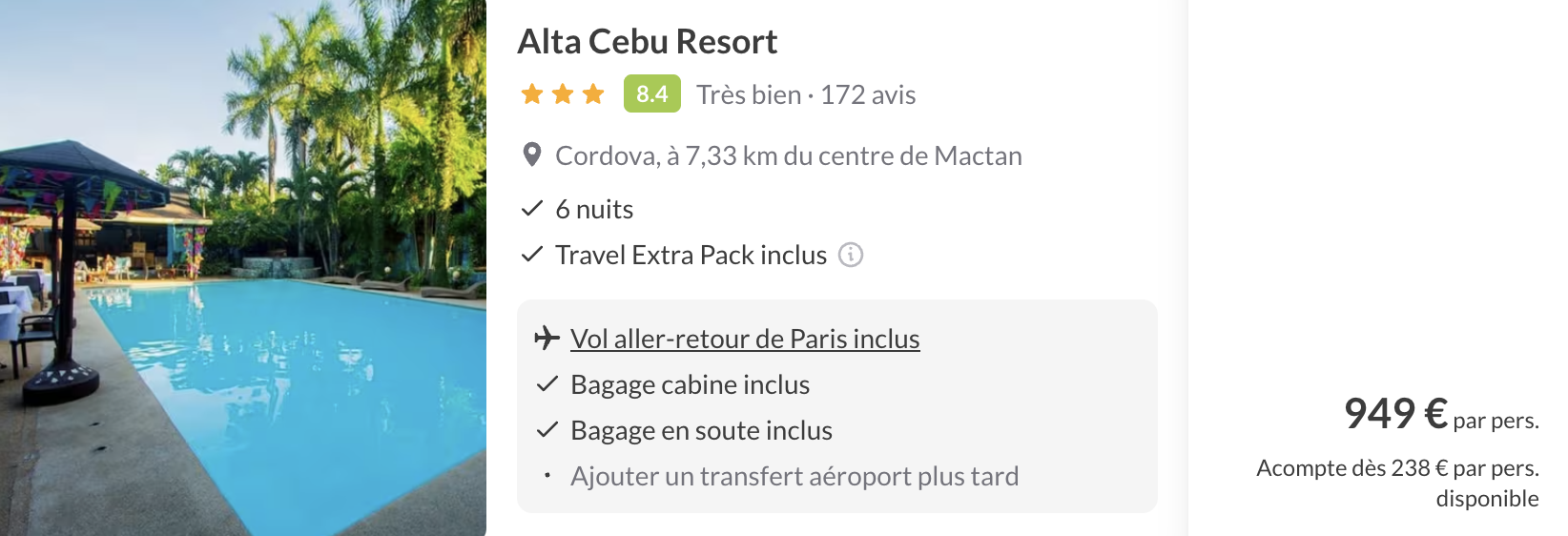 Envie dâĂ©vasion cet hiver ? Cap sur les Philippines pour une semaine de rĂȘve au ALTA Cebu Resort, un petit coin de paradis sur lâĂźle de Mactan, Ă deux pas des plages et proche des attractions locales. đïž