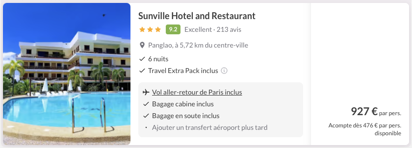 A noter : les prix sont corrects au moment de la publication, sur la base des exemples de dates fournis, et sont soumis à des fluctuations, en fonction des disponibilités.