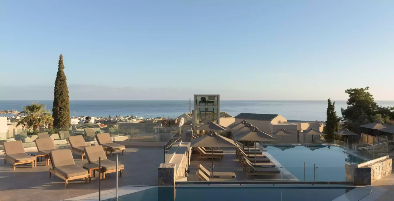 Sur place, tout est pensé pour votre confort : piscines pour se rafraîchir, espaces élégants pour se détendre et ambiance haut de gamme pour vraiment lâcher prise. Vous profitez également de la formule demi-pension pour savourer pleinement votre séjour sans contrainte. Les journées s’écoulent entre farniente, baignades et découvertes des trésors crétois.
