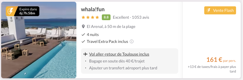Avec les vols AR inclus, offrez vous une escapade ensoleillĂ©e pour Ă peine 161âŹ, sans faire de compromis sur l'hĂ©bergement !