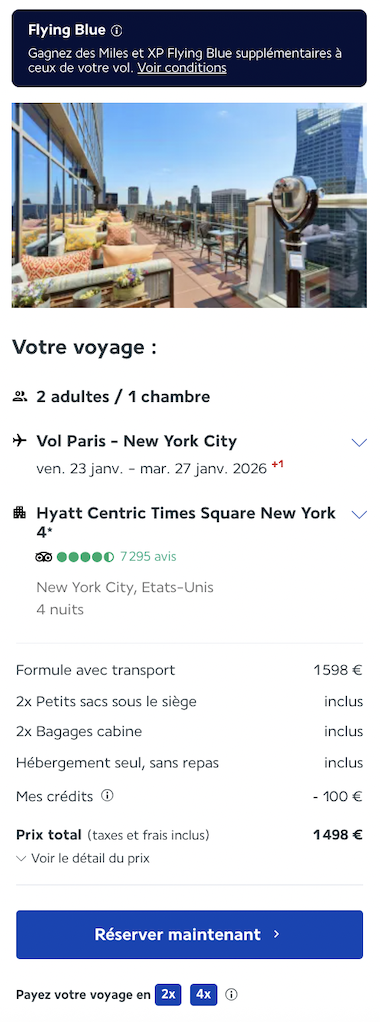Réservez un séjour Vol + Hôtel et gagnez des Miles et des XP Flying Blue pour vos prochains voyages. Chaque réservation vous rapproche de votre prochaine aventure. Explorez de nouveaux horizons grâce au programme de fidélité du groupe Air France-KLM.