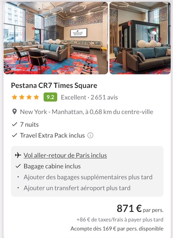 Partez à New York pour une semaine dans un hôtel 4* ultra stylé à deux pas de Times Square. Vols A/R inclus, à moins de 900€ par personne ! L’occasion rêvée de vivre la frénésie new-yorkaise sans exploser votre budget 💸
