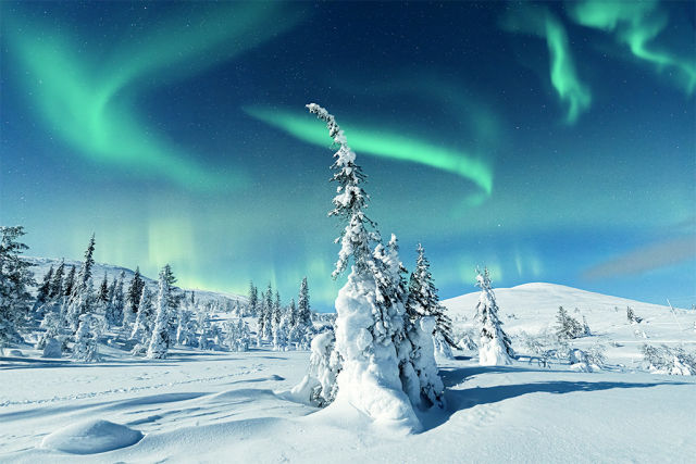 Direction Levi, petit joyau enneigé du nord de la Finlande, où les forêts boréales, le calme absolu et les ciels dansants des aurores boréales composent un décor digne d’un conte de Noël.