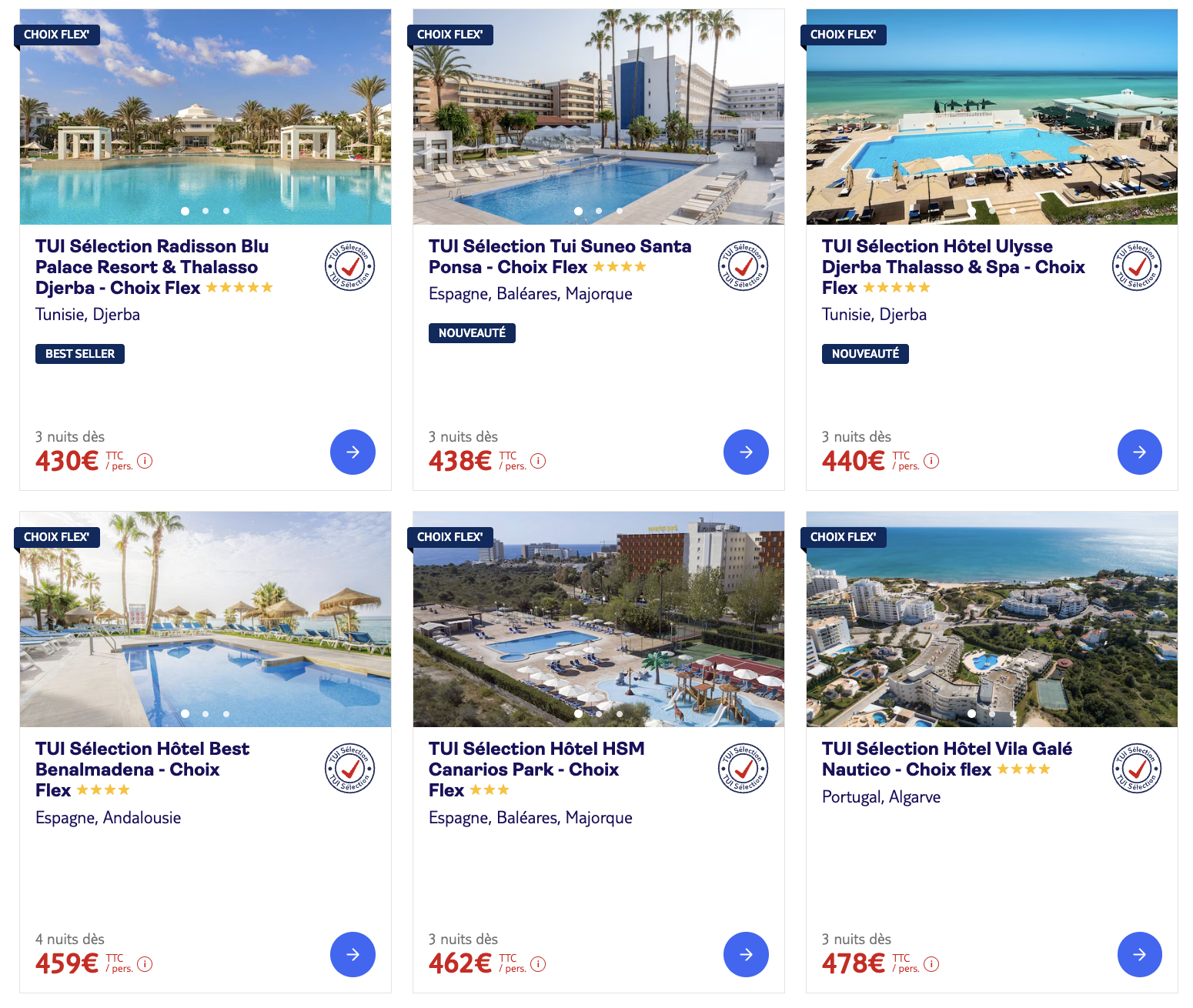 Cliquez sur le bouton de réservation ci-dessous afin de voir les différents séjours et circuits proposés sur le site TUI :