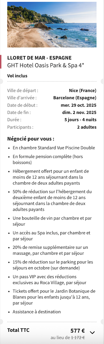 Mais les surprises ne s'arrêtent pas là : ce forfait exclusif à seulement 289€ par personne comprend également d'autres avantages incroyables à découvrir plus bas.