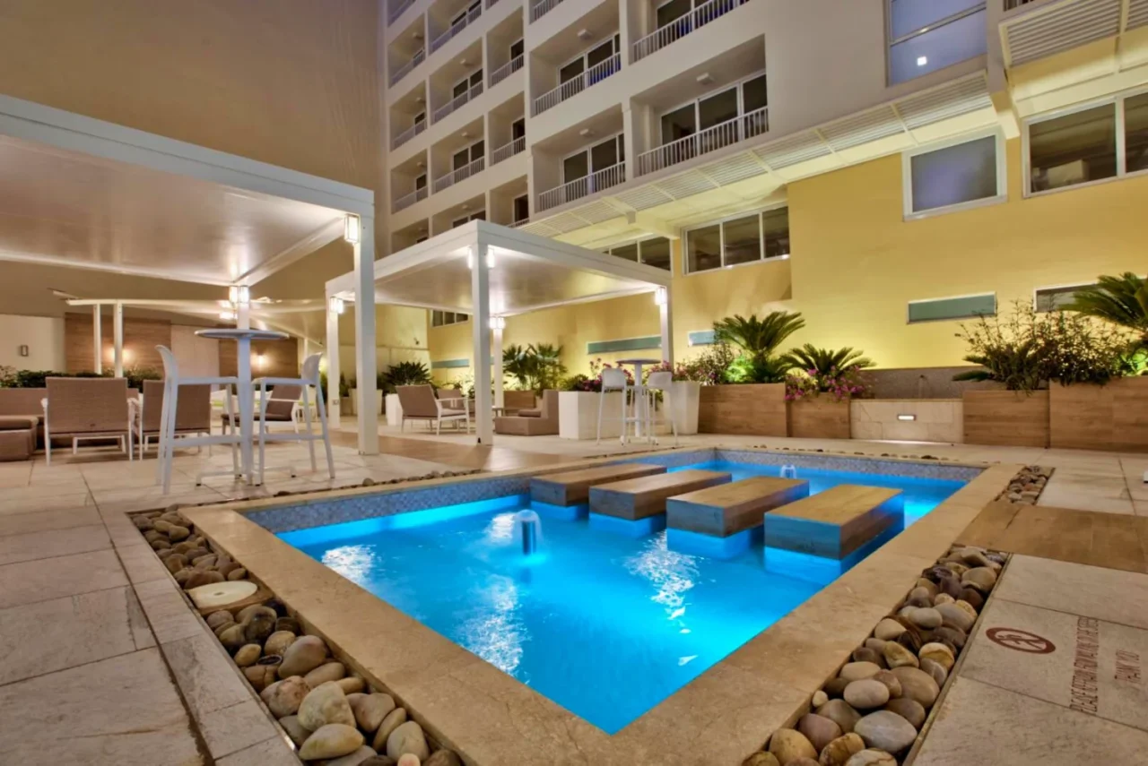 Equipements : RĂ©ception ouverte 24h/24 / bureau dâexcursions / service de location de voitures / parking public gratuit / accĂšs pour les personnes Ă mobilitĂ© rĂ©duite / connexion Wifi / restaurant / cafĂ© / pool bar / terrasse / piscine extĂ©rieure et intĂ©rieure / solarium avec transats et chaises longues / toit-terrasse avec vue panoramique / jardins amĂ©nagĂ©s / spa Indigo Wellness Centre / soins du corps et du visage / salles de massage / sauna / hammam / bains Ă remous / salle de fitness ouverte 24h/24 / chambres avec salle de bain privative / tĂ©lĂ©vision / coffre-fort / minibar / nĂ©cessaire Ă thĂ© et Ă cafĂ© / bureau / climatisation