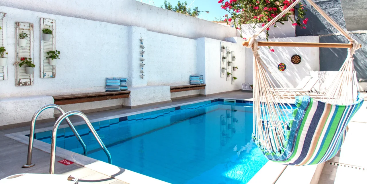 Pour votre séjour, j'ai déniché ce charmant appart'hôtel à Chersónissos, près d'Héraklion. En plus d'être doté d'une jolie piscine, l'établissement se situe à seulement 2 min à pied de la plage. L'idéal pour de longues journées transat et baignades ! Pour une semaine complète de pure détente, comptez seulement 150,5€ par personne.