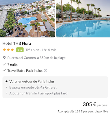 A noter : les prix sont corrects au moment de la publication, sur la base des exemples de dates fournis, et sont soumis à des fluctuations, en fonction des disponibilités.