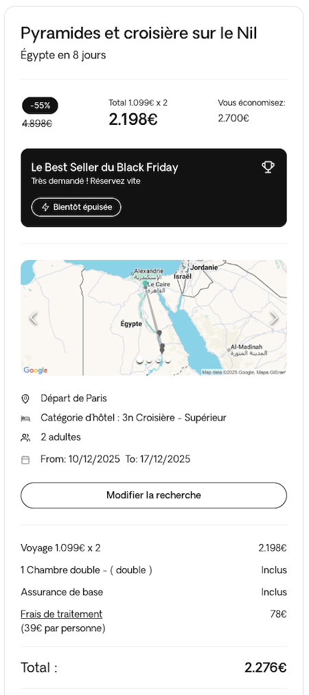 Avec l'assurance incluse, partez l'esprit tranquille et vivez une aventure légendaire au pays des pharaons. Réservez dès maintenant pour une expérience inoubliable en Égypte !