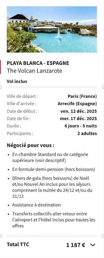 A noter : les prix sont corrects au moment de la publication, sur la base des exemples de dates fournis, et sont soumis à des fluctuations, en fonction des disponibilités.