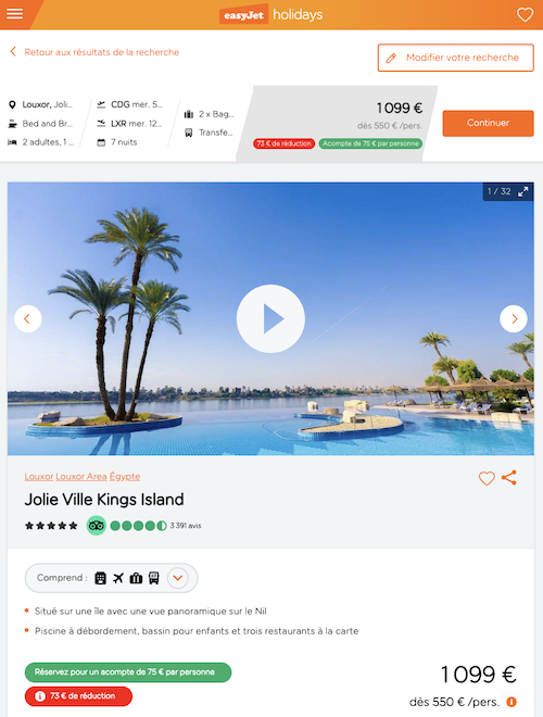 A noter : les prix sont corrects au moment de la publication, sur la base des exemples de dates fournis, et sont soumis à des fluctuations, en fonction des disponibilités.
