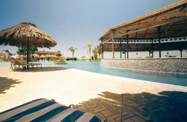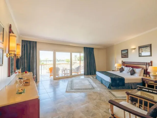 Équipements : Séjour en bord du Nil / 3 piscines extérieures dont une chauffée en hiver / Spa & centre de bien-être avec massages / Chambres climatisées avec terrasse ou balcon / Restaurants & bars variés / Salle de sport / Courts de tennis / Animations et spectacles / Mini-club pour enfants / Activités nautiques / Jardin tropical et vues panoramiques sur le fleuve / Wi-Fi gratuit