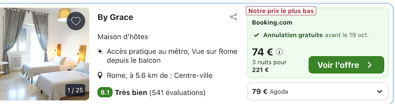 Et c'est précisément ce que je vous propose ici, avec ce citytrip de 3 nuits à Rome, pour moins de 170€ p.p, incluant les vols AR et l'hébergement dans une charmante maison d'hôtes située près d'une ligne de métro, offrant un accès facile au centre-ville.
