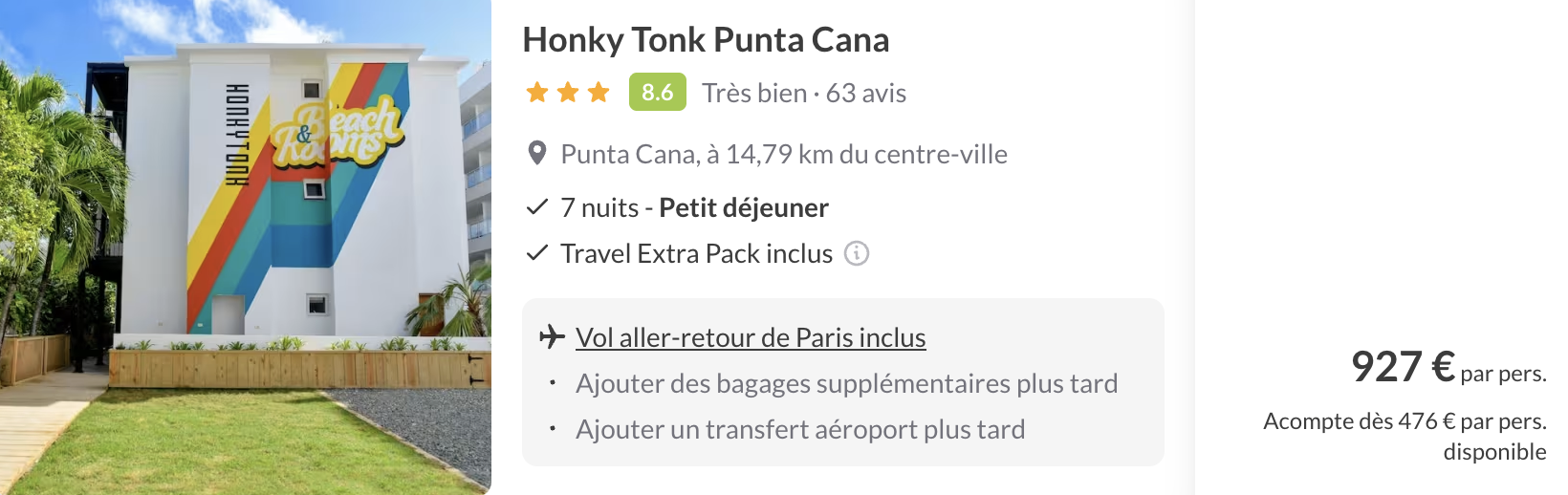 Les vols A/R sont inclus, histoire que tout soit simple : vous n’avez plus qu’à glisser votre maillot et vos lunettes de soleil dans la valise.