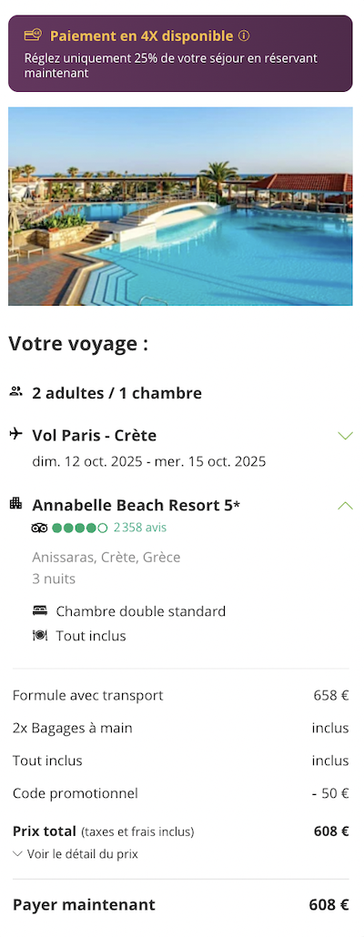 💰 Offres spéciales jusqu'au 31 août : 50€ offerts dès 499€ avec le code TRAVEL50 / 100€ offerts dès 999€ avec le code TRAVEL100 💰
