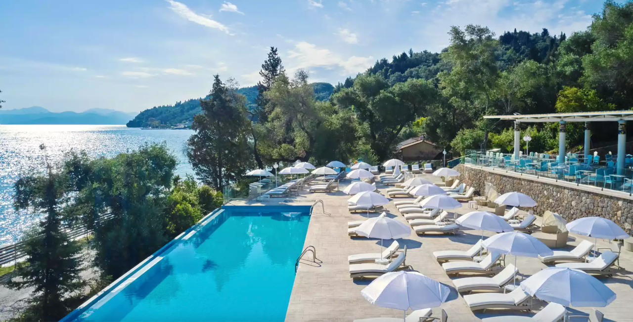 Vous séjournerez pendant 6 jours à Corfou dans un sublime hôtel 5* avec vue panoramique sur la mer, piscines, spa et sauna, à proximité immédiate de la plage. Un lieu véritablement paradisiaque dans lequel vous pourrez également profiter du confort de la formule tout inclus.