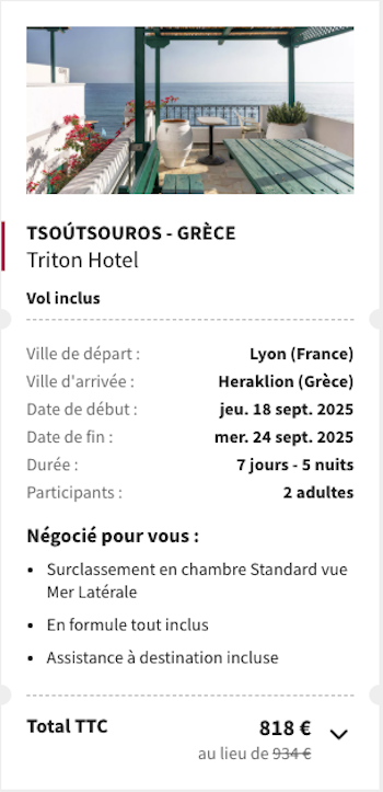 Exemple de séjour depuis Lyon du 18 au 24 septembre 2025 :