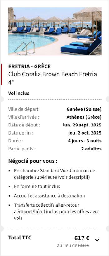 A noter : les prix sont corrects au moment de la publication, sur la base des exemples de dates fournis, et sont soumis à des fluctuations, en fonction des disponibilités.