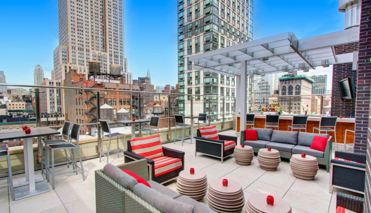 Equipements : Toit-terrasse / Bar-restaurant / Salle de sport ouverte 24 h/24 / Chambre avec vue sur Midtown Manhattan