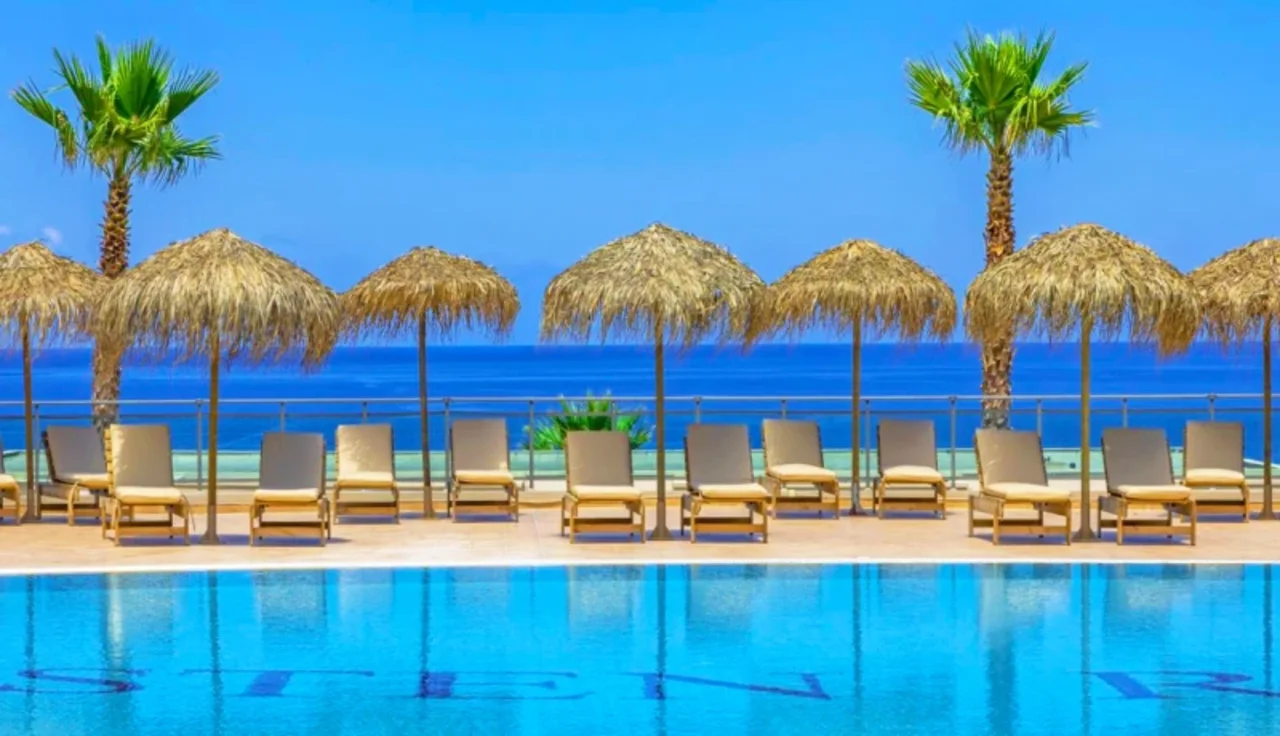 Equipements : Réception ouverte 24 h/24 / Chambre vue mer / Balcon ou terrasse / Connexion Wifi / 2 restaurants / Bar / Plage privée / 4 piscines extérieures dont une pour enfants / Piscine couverte et chauffée / Aire de jeux pour les enfants / Salle de sport / Centre de bien-être avec sauna, jacuzzi, massages...