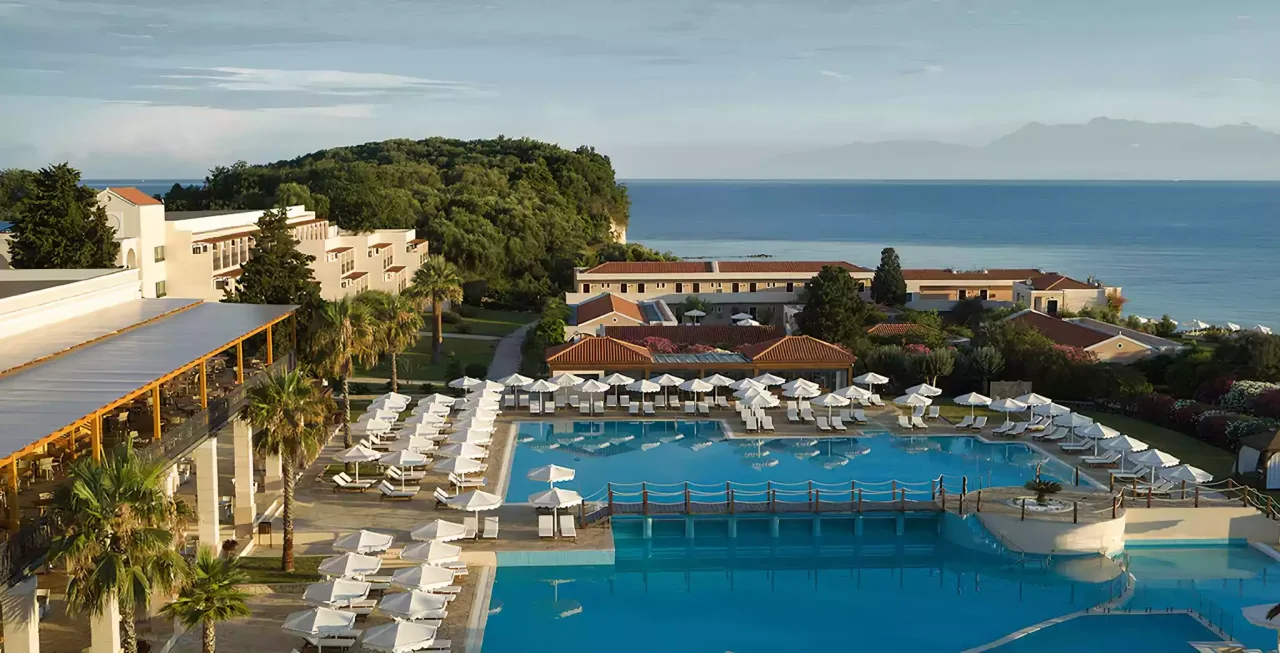 Niché le long des eaux scintillantes de la mer Ionienne, cet hôtel 5 étoiles vous offre un havre de paix. Profitez de journées ensoleillées sur la plage privée, plongez vous rafraichir dans les 6 piscines disponibles ou laissez-vous choyer au sauna.