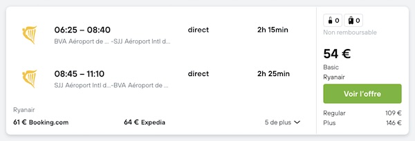 ❗️ A noter : la liste n'est pas exhaustive, n'hésitez pas à modifier les dates ou l’aéroport de départ une fois sur le comparateur de vols ou sur le site de réservation.