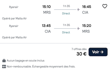 A noter : les prix sont corrects au moment de la publication, sur la base des exemples de dates fournis, et sont soumis à des fluctuations, en fonction des disponibilités.