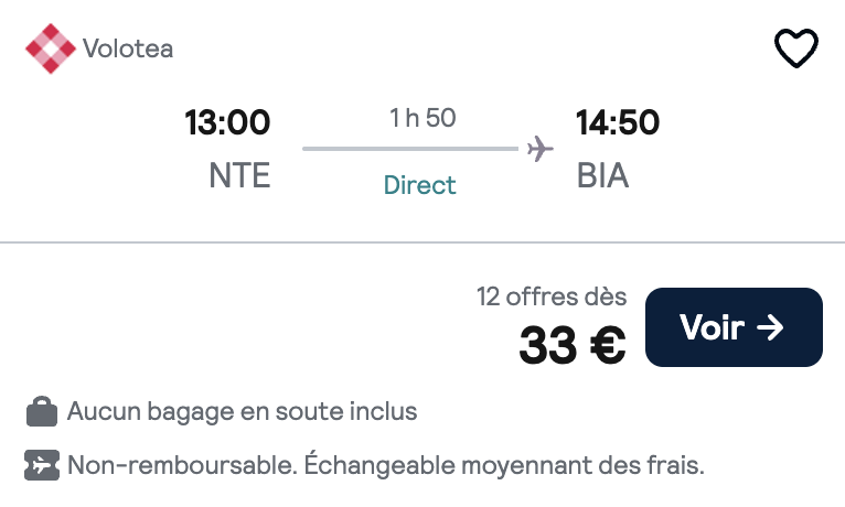 Exemple pour un vol Nantes - Bastia le 14 octobre 2025 :