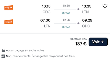 Depuis Paris CDG vers Londres du 23 au 26 décembre 2025 :