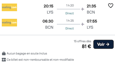 Depuis Lyon vers Barcelone du 22 au 26 décembre 2025 :