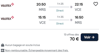 A noter : les prix sont corrects au moment de la publication, sur la base des exemples de dates fournis, et sont soumis à des fluctuations, en fonction des disponibilités.