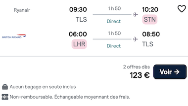 Depuis Toulouse vers Londres du 23 au 26 décembre 2025 :