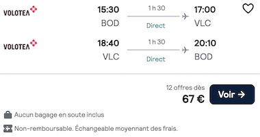 Depuis Bordeaux vers Valence du 21 au 26 décembre 2025 :