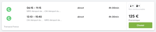 Exemple de vols depuis Marseille du 11 au 18 janvier 2026 :