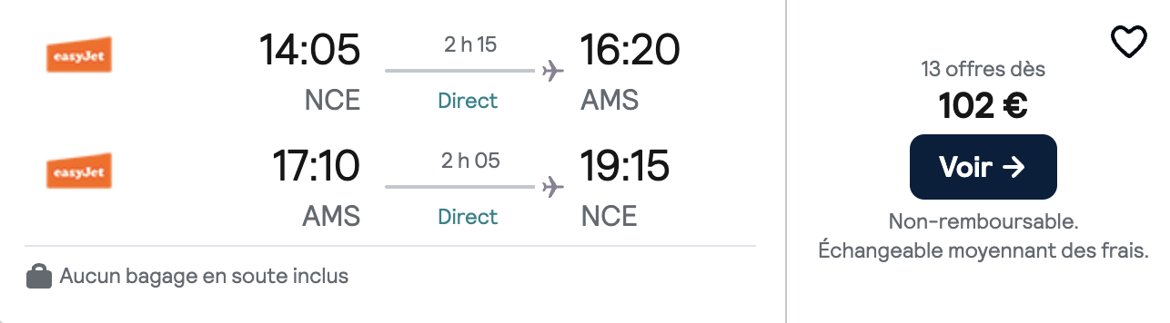 Sélection de vols A/R pas chers pour Amsterdam pendant la saison automne/hiver 🇳🇱