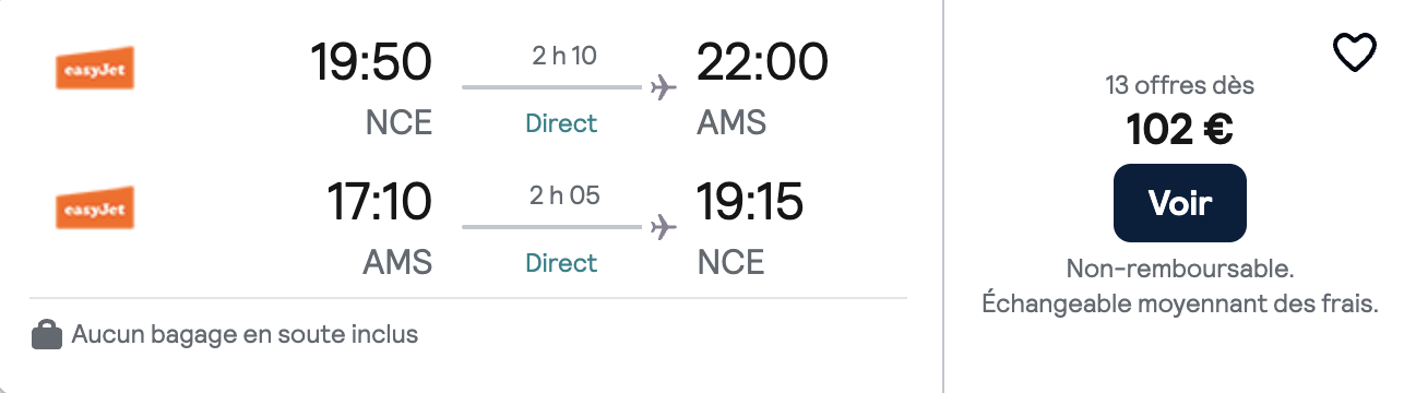 Et les vols directs les moins chers du moment sont à seulement 102⏠par personne : un prix mini !