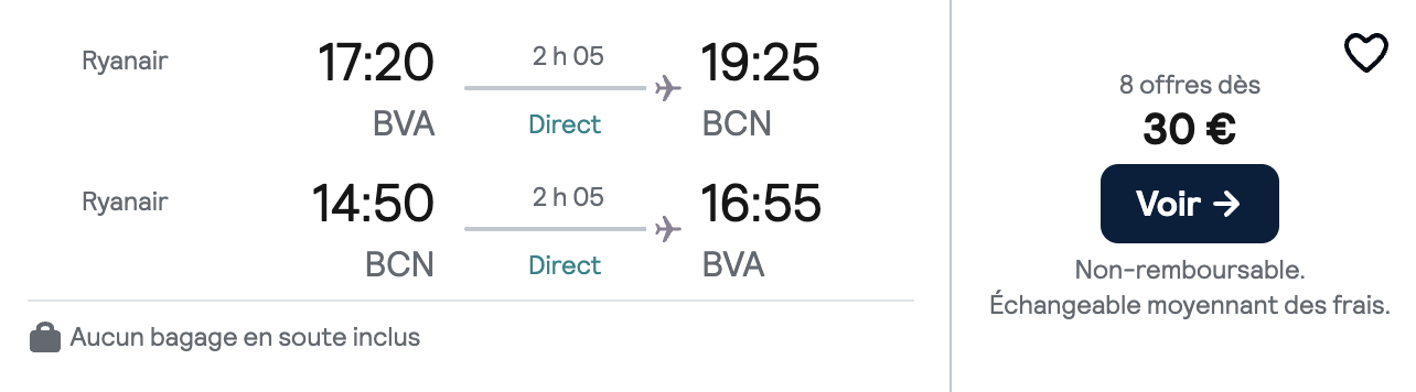 ❗️ A noter : la liste n'est pas exhaustive, n'hésitez pas à modifier les dates ou l’aéroport de départ une fois sur le comparateur de vols ou sur le site de réservation.