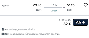 Depuis Paris Beauvais vers Edimbourg le 31 décembre :